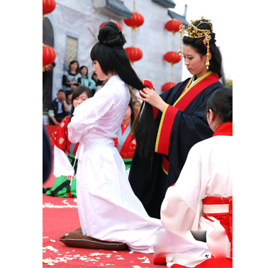 古代也有“妇女节” 女孩戴石榴花佩五彩丝线